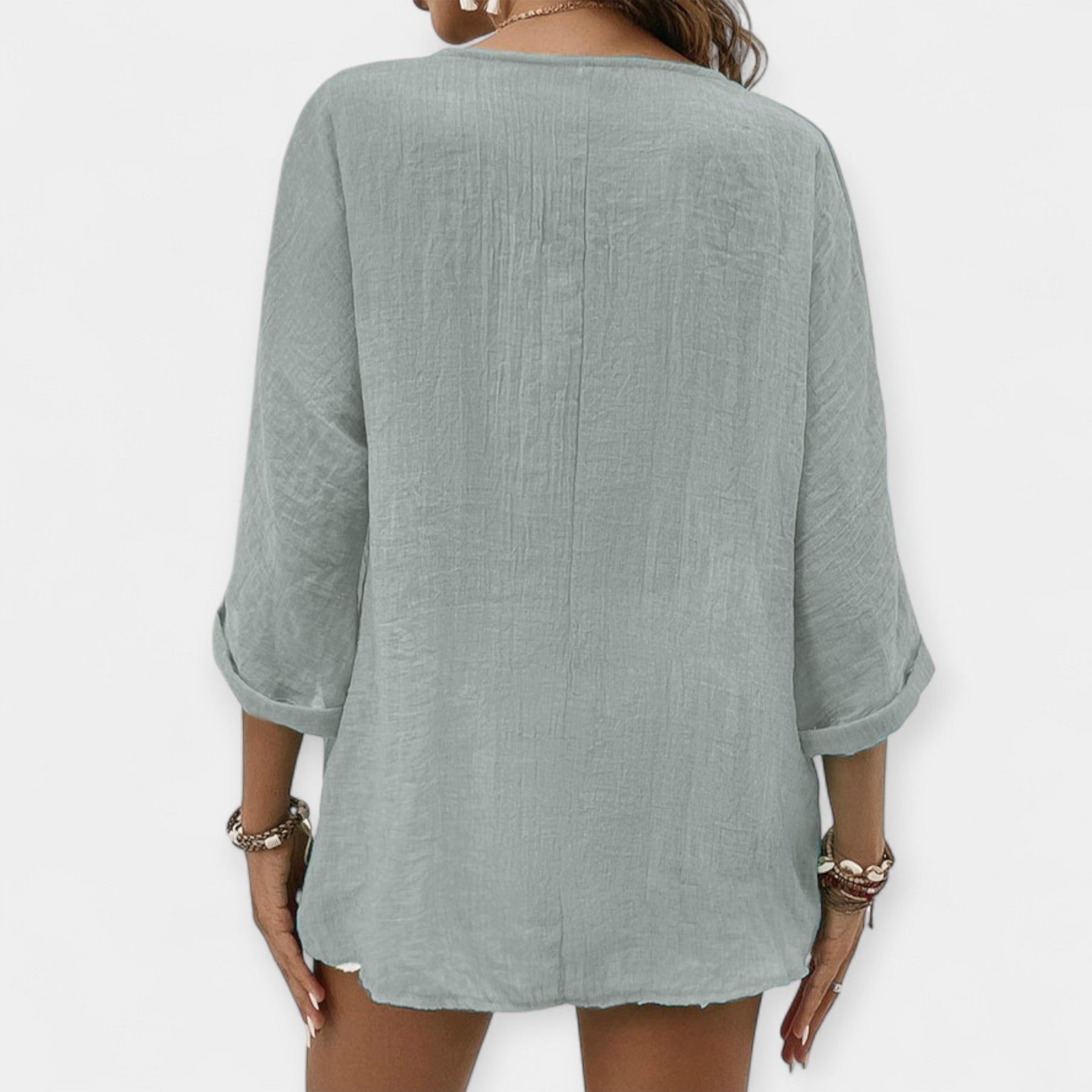 Lightweight linen shirt with a V-neckline, perfect for stylish and cool everyday looks.
