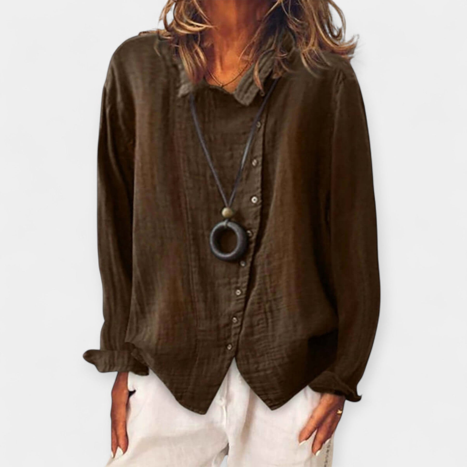Made from a lightweight blend of cotton and linen for effortless comfort and style. With a relaxed H-line fit and long sleeves, it is perfect for spring and summer days. Pair it with leggings, jeans, or wear it on its own for an effortless yet polished look.