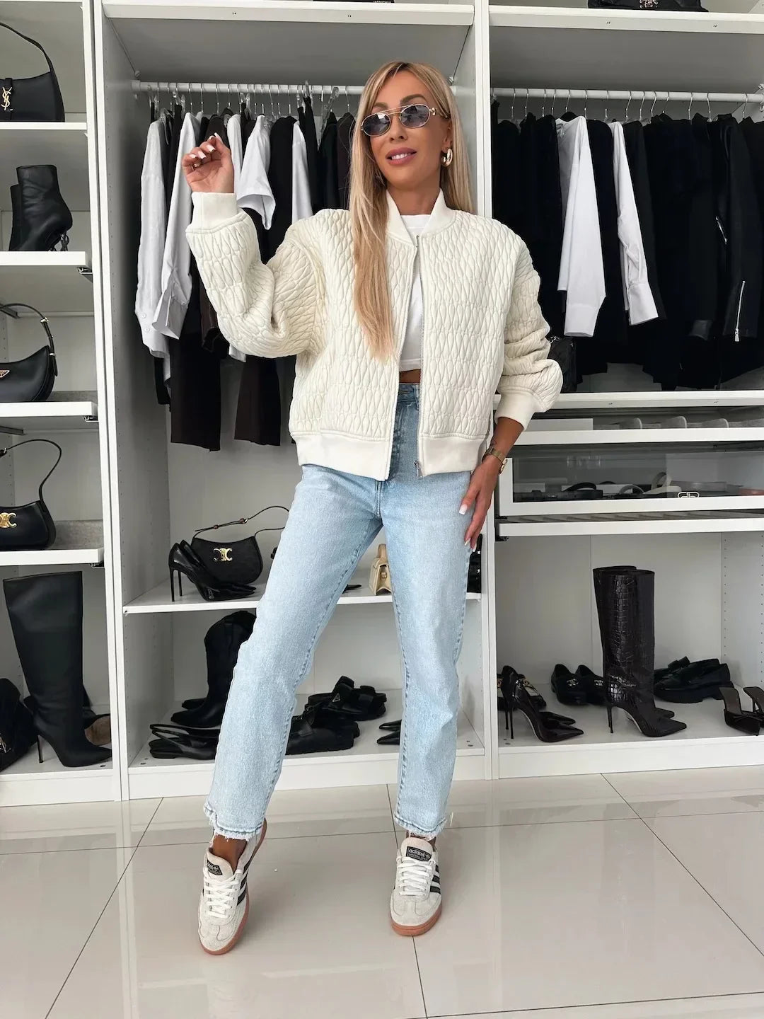 The Elizabeth Quilted Bomber Jacket combines style and comfort in one piece. The quilted pattern provides warmth, while the classic bomber silhouette delivers a sporty yet elegant look. Perfect for everyday wear, city strolls, or relaxed weekends where comfort and style go hand in hand.